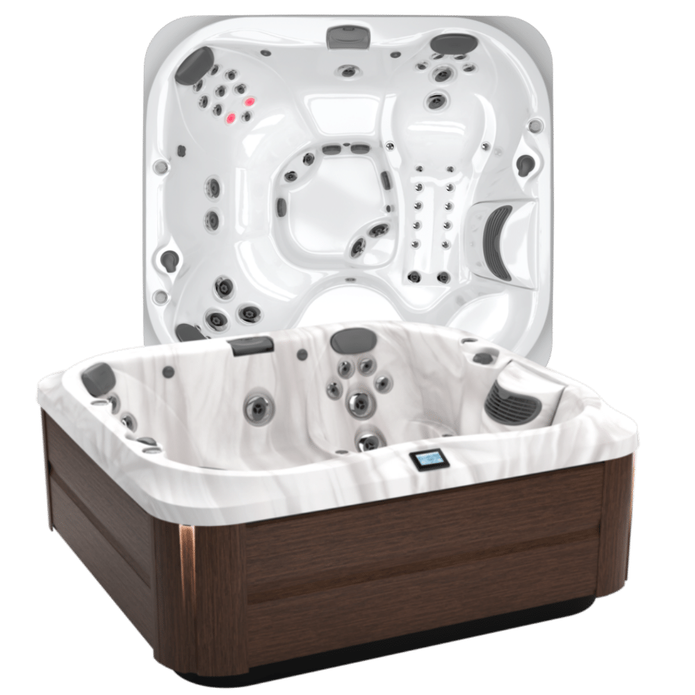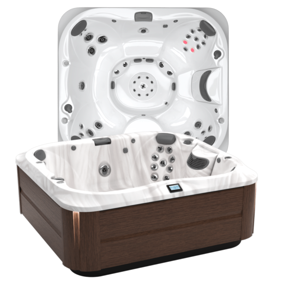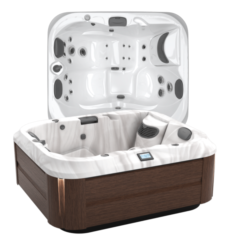 The J‑300™ Collection prioritizes comfort and relaxation, featuring premium PowerPro® jets, HydroSoothe™ pillows, and ergonomically designed seating for a full-body spa experience. An advanced control panel puts settings at your fingertips, while CLEARRAY® On-Demand technology ensures effortless water maintenance and sparkling clean water.